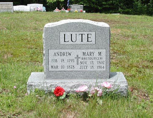 This is the gravesite of Andrew and Mary Magdeline (Brendlinger ) Lute at the German Lutheran Cemetery in West Wheatfield Township, Indiana County, Pennsylvania. Andrew and Mary were my 3rd-great-grandparents.