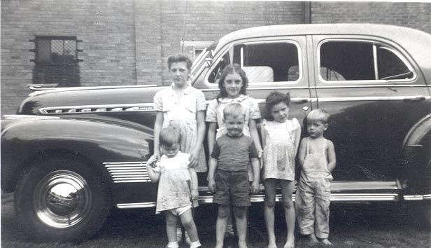 This is a picture of my mother with her sisters and some of her cousins. Across the back is my mother, Ginger Stewart; her sisters, Sandy and Billie; and Bobby Warfel. Standing in front is Penny Cline and Arthur (Bucky) Warfel. |