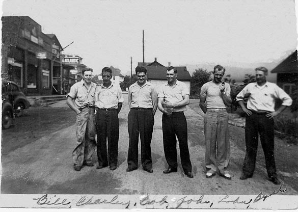 These are the Cline brothers and their brother-in-laws. From left to right are Bill Stewart (my grandfather), Charley Shoup, Bob St. Clair, John Cline, Lohn Cline, and Virgil 'Byrd' Young.