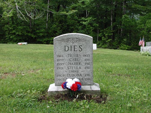 Tillie (Jamison) Dies was the first wife of William Franklin (Dias) Dies. All of the children listed here died when their house in Heshbon caught fire. These five children as well as 3 children from his second marriage all died in the fire. William's second wife, Lorena Mae Lambes, survived the fire and they had several more children after this. |