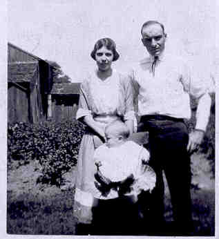 These are my grandparents, Alfred Bruce Clawson and Florence Hannah (Miller) Clawson. My grandfather was known to everyone as Bruce. The baby in the picture is probably my uncle, Robert Alfred (Bob) Clawson. The picture was taken around 1922. |