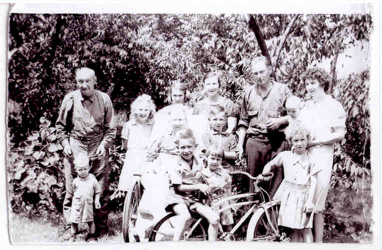 This is picture of members of the Bruce and Lottie Lute family. Starting from the top right and going counter-clockwise. Iva is holding Roland, Orlo, Hyacinth, Della Rome, Allegra Lute, Bruce Lute, David, Lottie Lute, Norman, Bruce, unknown child, and Mona H. |