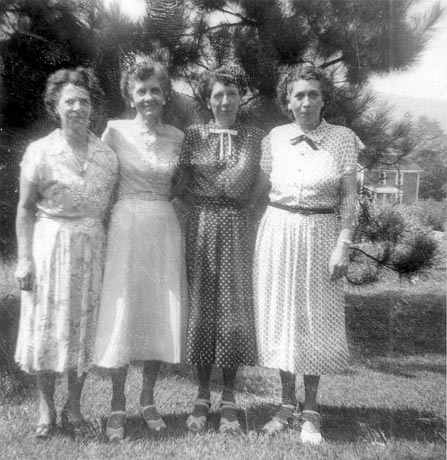 This is a picture the Miller sisters. Left to right are Cora, Florence (my grandmother), Edna, and Gladys. This picture was taken in the back yard of my grandmother's house in Bolivar, Pennsylvania.