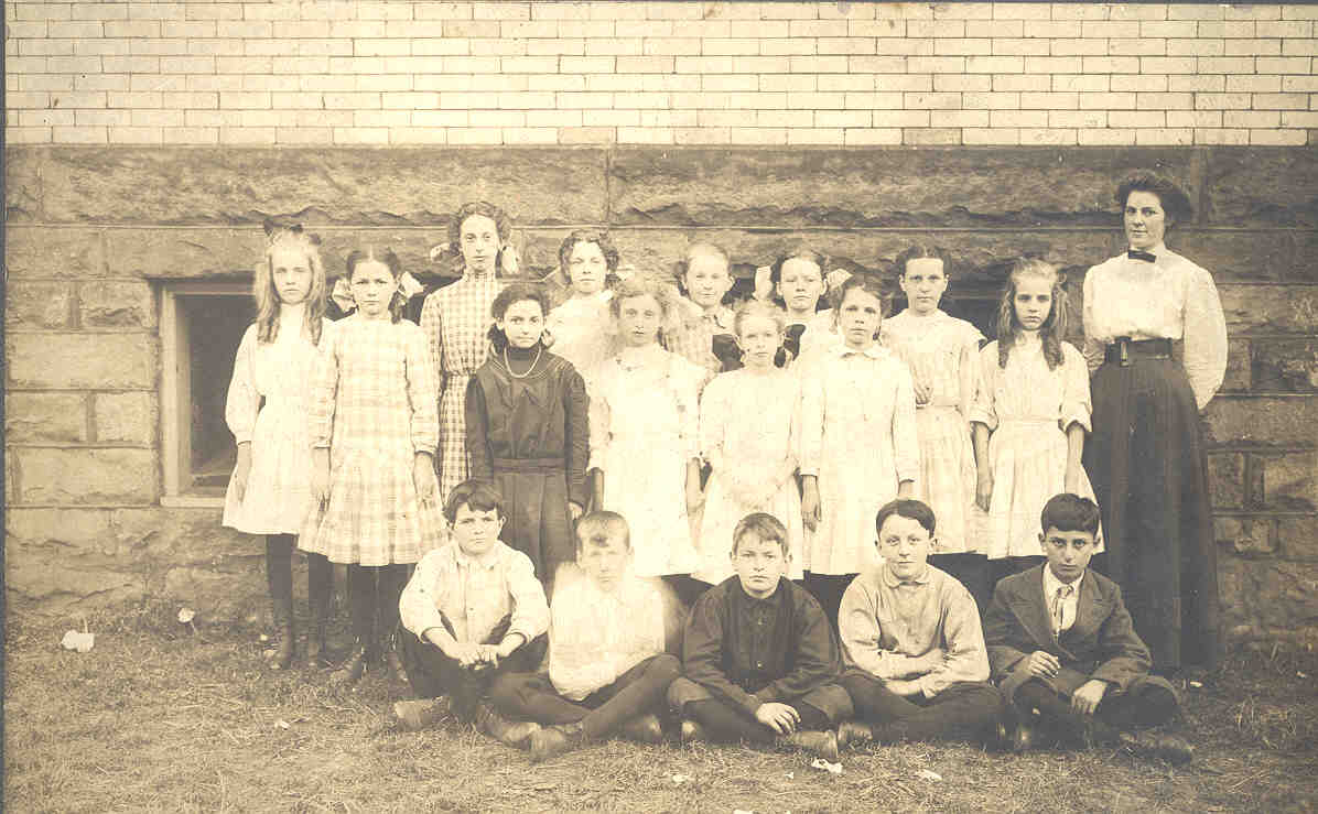 This a class picture that was probably taken at the old Bolivar school.  None of the children or the school teacher in the picture are known.